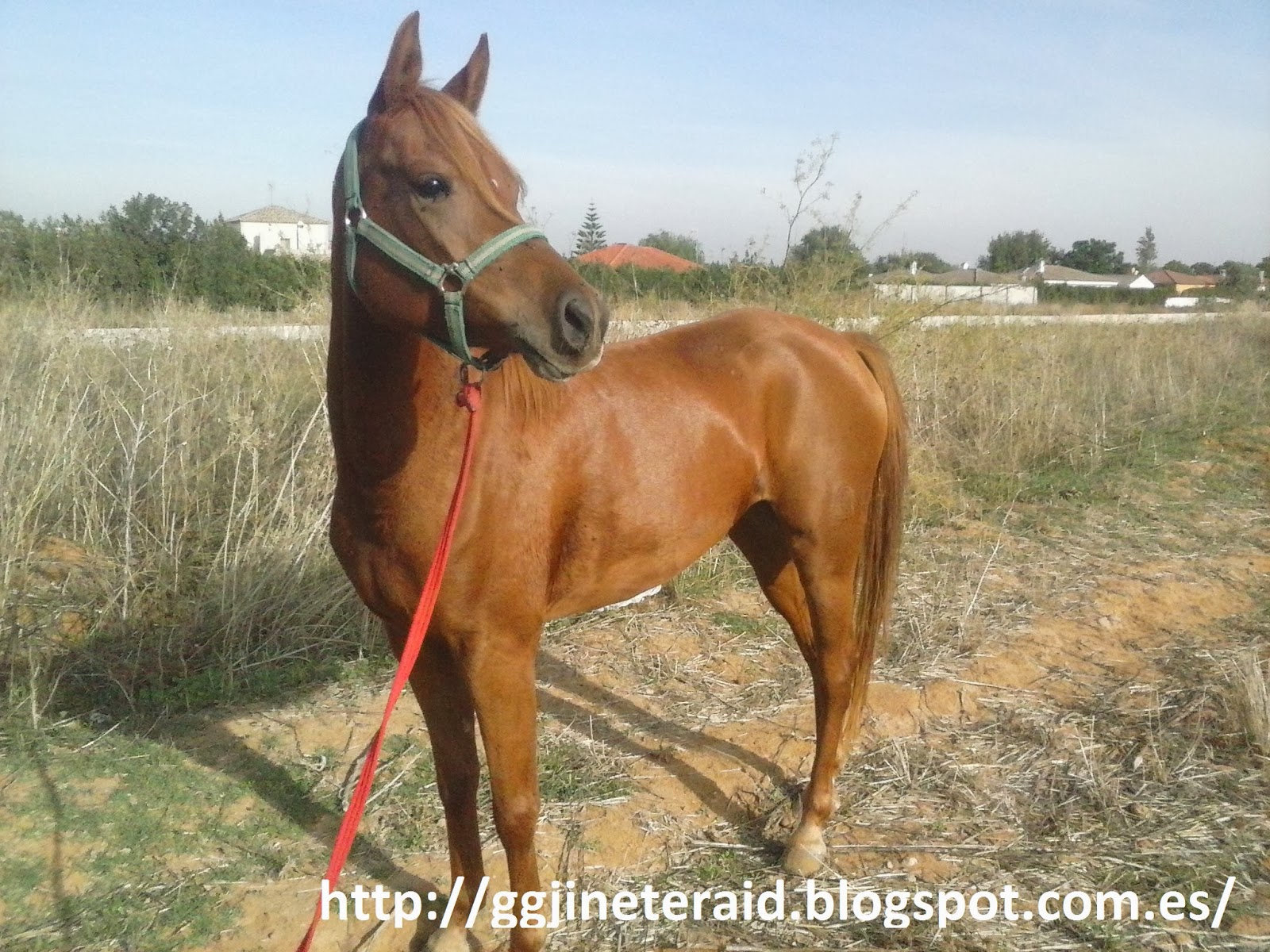Hoy sábado hacemos un recorrido más largo, con un empiece complicado, ya que ayer no salimos y hoy sale muy fuerte, nada más salir nos cruzamos con un ciclista y su perro, se asusta la yegua dando media vuelta y sale de caña, se mete en un barbecho empapado por la lluvias de estos días, se pone histérica al sentir que el barbecho se hunde, a los caballos cuando se atascan en un barbecho ó terreno un tanto movedizo, se ponen nerviosos y pueden ocasionar problemas.
