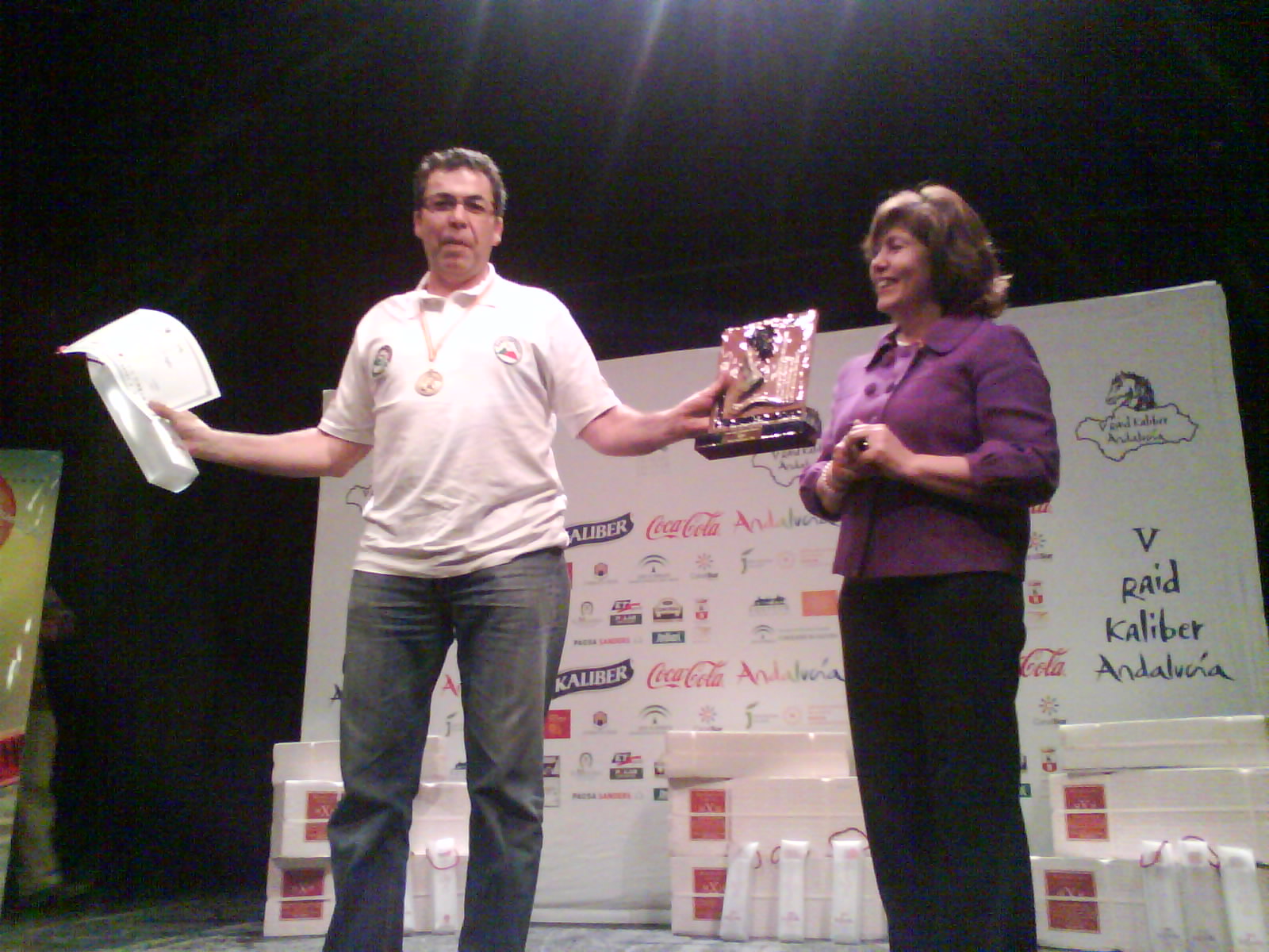 Esta noche, en el teatro municipal de Cazorla, presidido por la plana mayor del Excmo. Ayuntamiento de Cazorla y por parte del comité organizador de la prueba, se celebro el acto de clausura del V Raid Kaliber-Andalucia, con la entrega de premios a los ganadores de las dos categorías del Raid y los premios especiales al mejor equipo de asistencia, al mejor jinete, a la mejor amazona, al caballo con mejor condición, al mejor caballo árabe, al mejor caballo anglo-árabe y un reguero de premios, en especial a los ganadores de Equipos y Binomios.