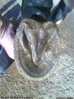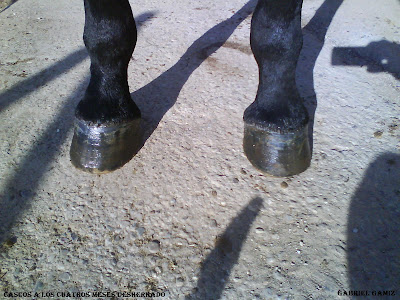 - Continuo con mi nueva técnica Barefoot ( Caballo descalzo), los cascos evolucionan muy bien, las ranillas van creciendo a una gran velocidad, os muestro algunas imágenes de su evolución.