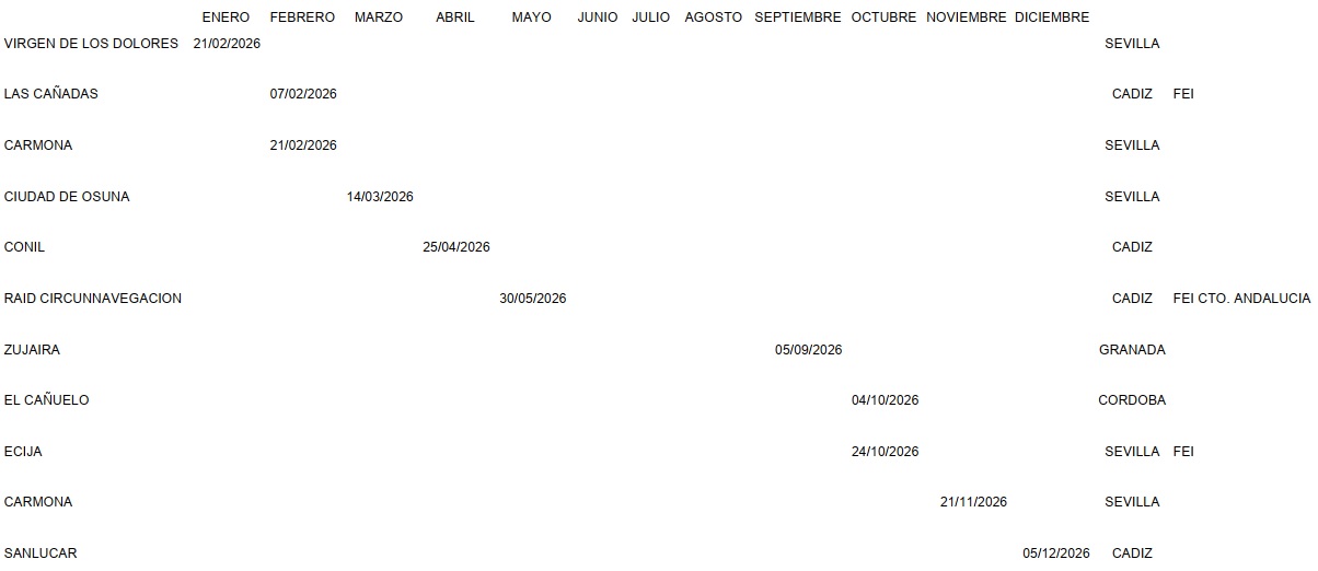 Desde la Vocalía de Raid de la Federación Andaluza de Hípica, me remiten el Calendario Provisional de la Pruebas de Raid del año 2026.