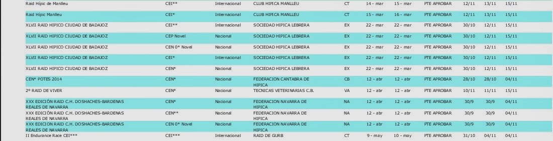 Este es el Calendario Provisional de Raid 2014 de la RFHE, pendiente de la aprobación por la Asamblea General Ordinaria el día 11 de Diciembre de 2013.