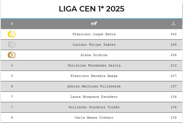 Francisco Luque Primer clasificado en la Liga  CEN*