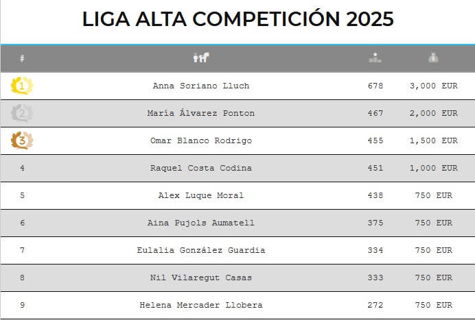 Ana Soriano, Primera Clasificada en la Liga de Alta Competición 2025.