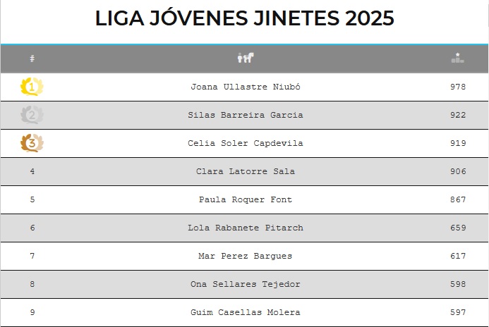 Clasificación completa en:Liga Jóvenes Jinetes 2025-