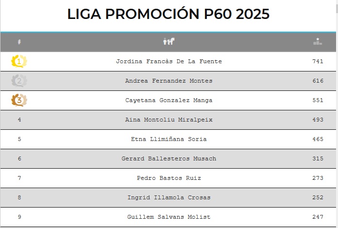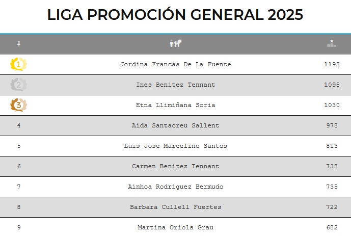 Jordina Francàs De La Fuente - Primera Clasificada en la Liga de Promoción General 2025.
