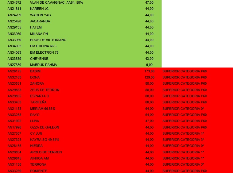 Clasificación de los Caballos del CEA-Promoción de 60 Km.