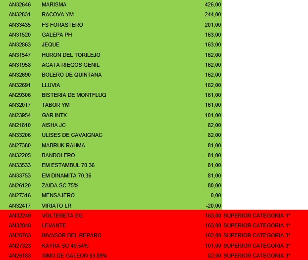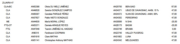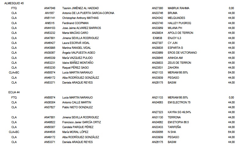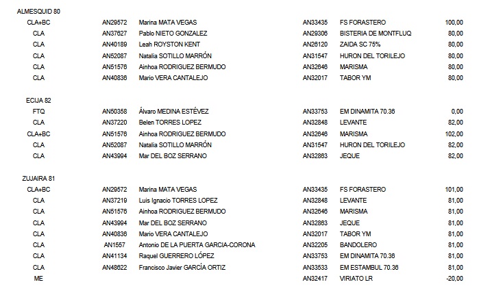 Clasificación de los Caballos del CEA-Promoción de 40 Km.