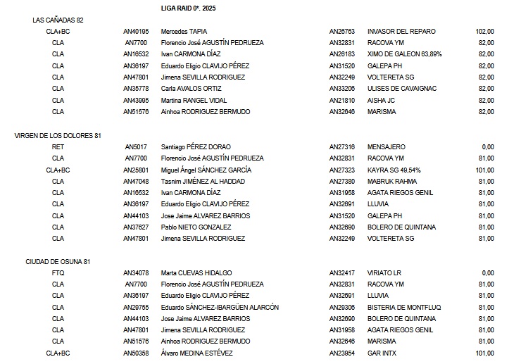 Clasificaciones Provisionales de las Ligas de Raid de la Federación Andaluza de Hípica 2025.