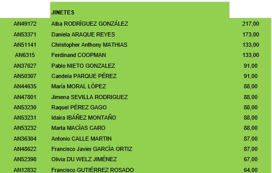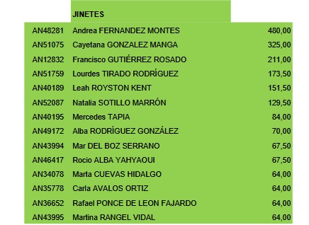 Clasificación de los Jinetes del CEA-Promoción de 60 Km.