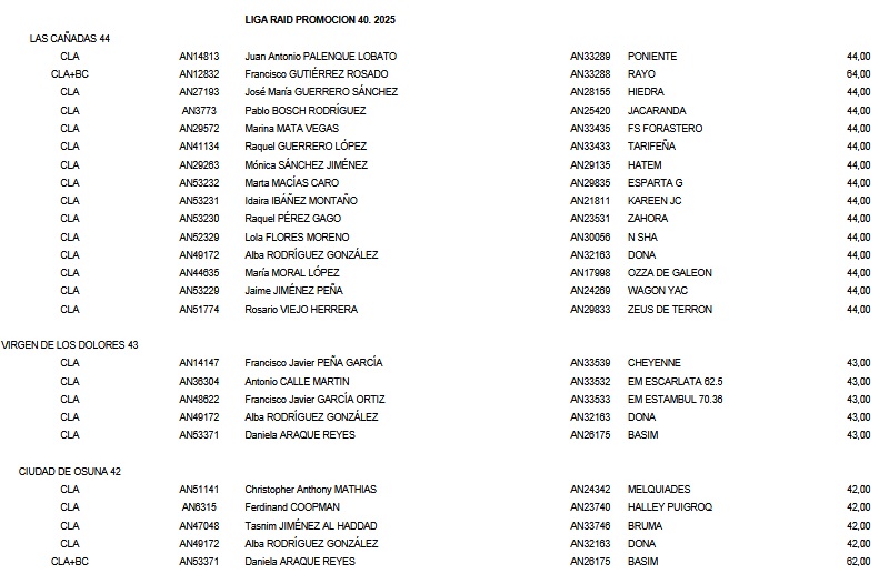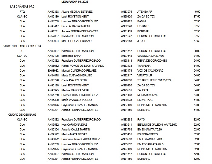 Estas son las Clasificaciones Provisionales de las Ligas de Raid de la Federación Andaluza de Hípica 2025. que me remite la Vocalía de Raid de la FAH.