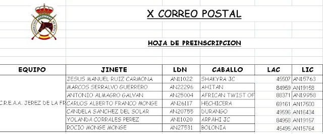 Estos son los componentes de los binomios del X Correo Postal, que están inscrito a fecha de 15 de Agosto de 2013.
