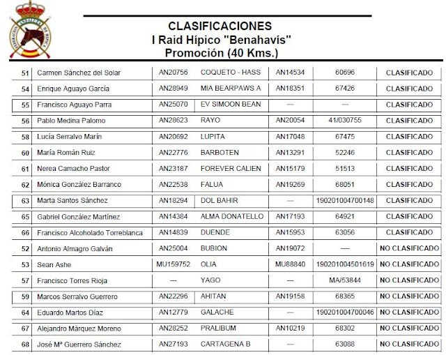Y nada más hay que ver los tiempos de recuperación para asombrarse de las cualidades que presenta este ejemplar de la Yeguada Yolanda Andalusí y que estamos seguros este año dará mucho que hablar en las pruebas de 60 km., primera esta de este año y que será en esta distancia la que se corra para el Cto. de Andalucía de Promoción.
