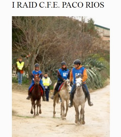 Desde el Comité Organizador del I Raid Hípico C.F.E. Paco Rios, Fuensanta de la Hoz Garcia, me remite la crónica de su primer Raid Hípico que se corrió el pasado sábado día 21 de Diciembre de 2013 en Alguazas (Murcia).