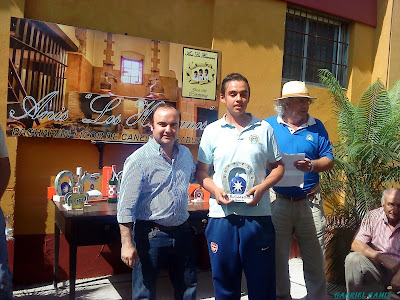 Después del magnifico refrigerio, se realizo la entrega de premios, en presencia de los representantes municipales y del Comité Organizador, en su representación Francisco Eslava, con un buen don de palabra, fue nombrando a los participantes para hacerle entrega de unos magníficos trofeos realizados por la artesana local María Jurado, trofeos de cerámica con el logo del Club Organizador «Club Caballista Carmona».