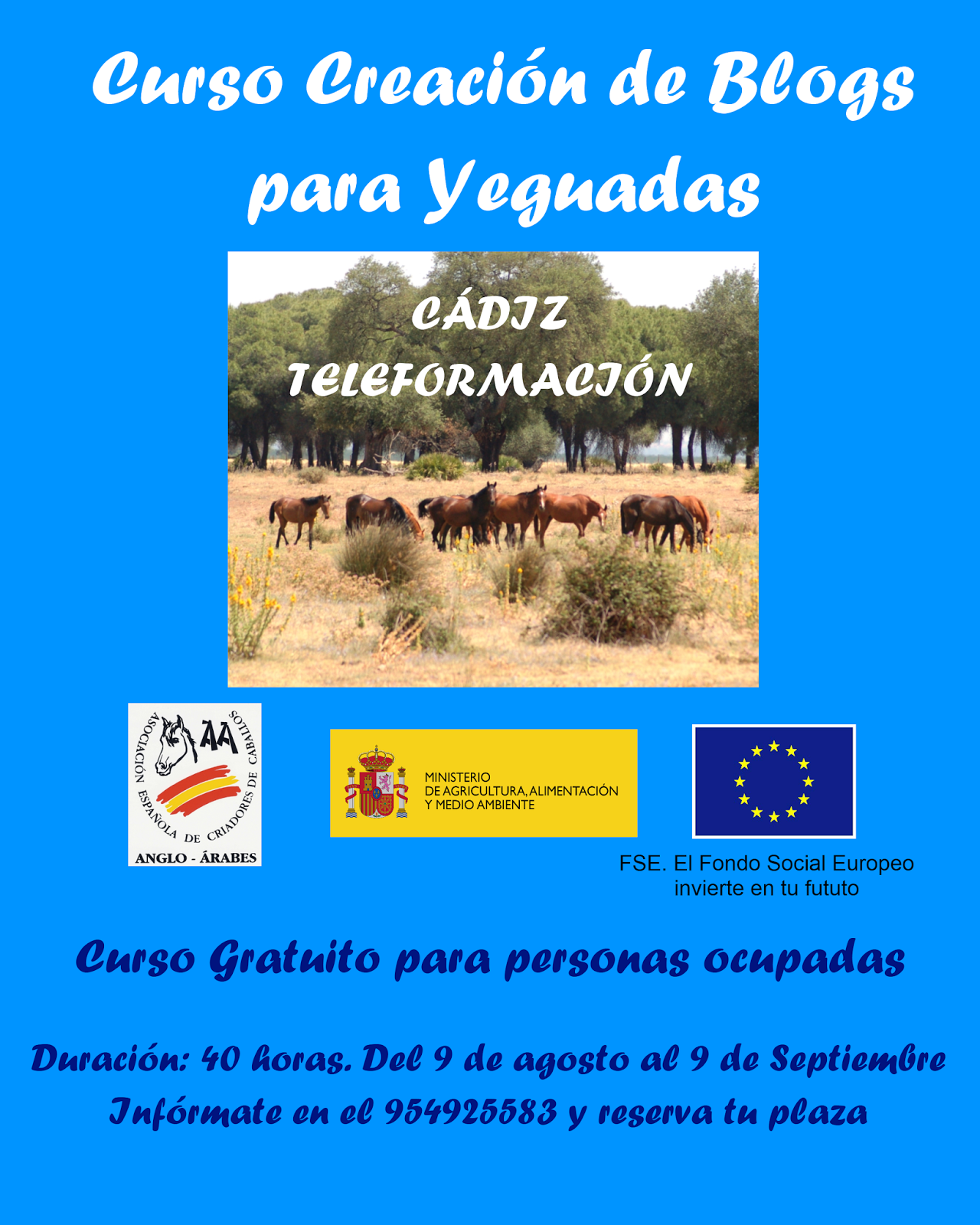 Noticias Curso Creación de Blogs para Yeguadas. 23 julio, 2013 Gabriel Gamiz 0 comentarios Curso Creación de Blogs, para Yeguadas Curso Creación de Blogs para Yeguadas. Desde AECCAA, nuestro amigo José María Parias, me remite los carteles del Curso para la creación de Blogs de Yeguadas. Saludos de Gabriel.