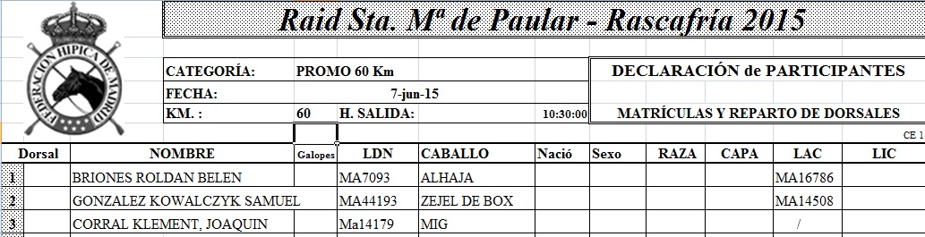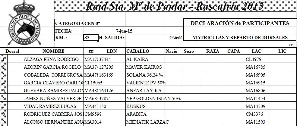 Declaración de Participantes de las pruebas nacionales del Raid Hípico de Santa María del Paular en Rascafria (Madrid), pruebas que se correrán el próximo domingo 7 de Junio de 2015.
