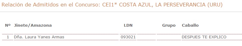 Españoles Admitidos en el CEI1* COSTA AZUL, LA PERSEVERANCIA. (URU).