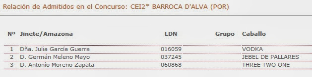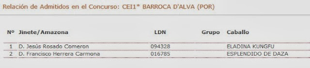 Españoles Admitidos en el Raid Hípico de Barroca D’Alba (POR).