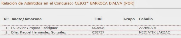 Españoles Admitidos en el Raid Hípico de Barroca D’Alba (POR).