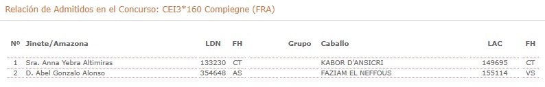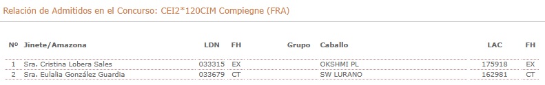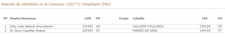 Españoles Inscritos en el Raid Hípico de Compiegne (FRA).