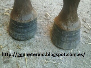 Otro de los avance, ha sido el hacerle los cascos, como es natural, todos los días le hemos ido cogiendo las extremidades, las manos directamente y los pies se los hemos ido cogiendo con la cinta de dar cuerda, todos los días, el hábito y constancia hace que se acostumbre a cosas extrañas para ella. Empezamos con las manos, escofina y legra, las manos las ha quitado varias veces del apoyo, pero al final se las hemos terminado. La sorpresa ha sido con los pies, con cuidado se lo hemos puesto por primera vez en el soporte de herrar, ante mi sorpresa, ni se inmutó, le escofinamos los cascos de los pies de corrido, le di un poco de descanso y se lo vuelvo a subir, terminándolo en la segunda subida. Este ha sido el primer recorte del sistema Barefoot para Hacedora, los cascos los tiene perfectos, camina por todo tipo de terrenos sin problemas, yo intento buscarle caminos pedregosos para compensar el tiempo estabulada en el box, así como barbechos que limpian perfectamente los cascos.