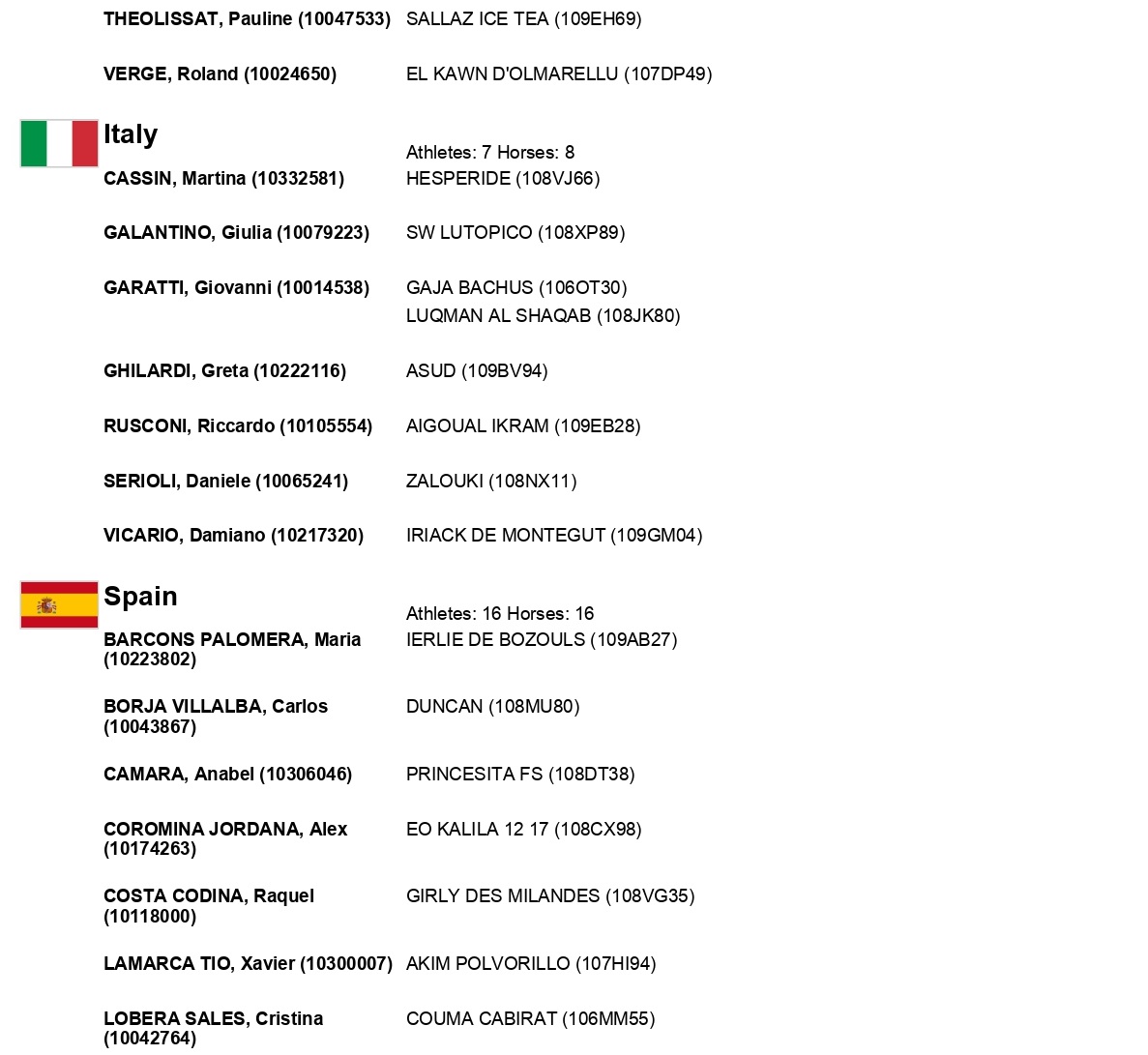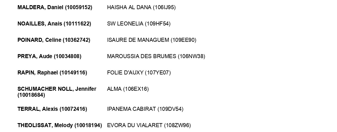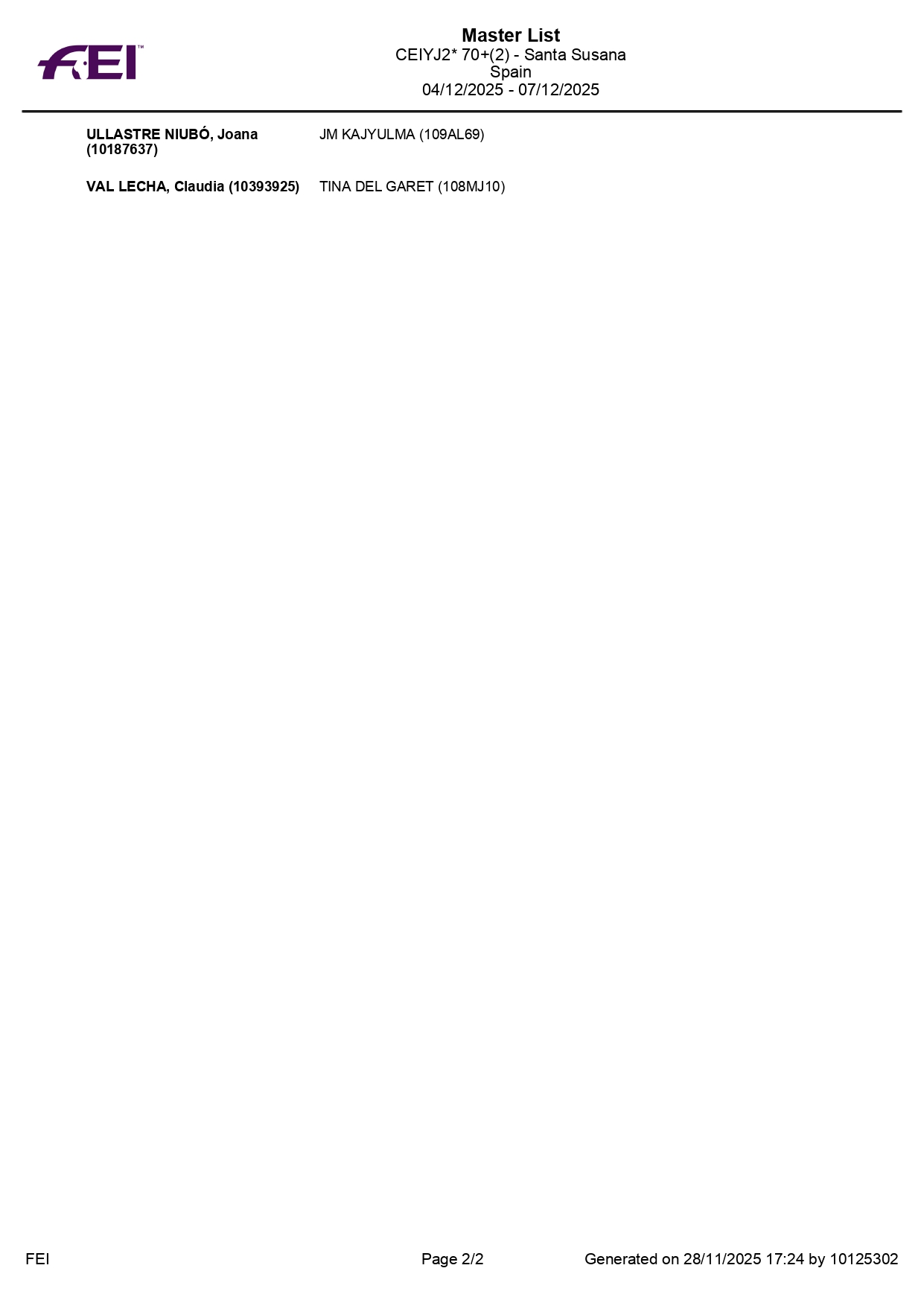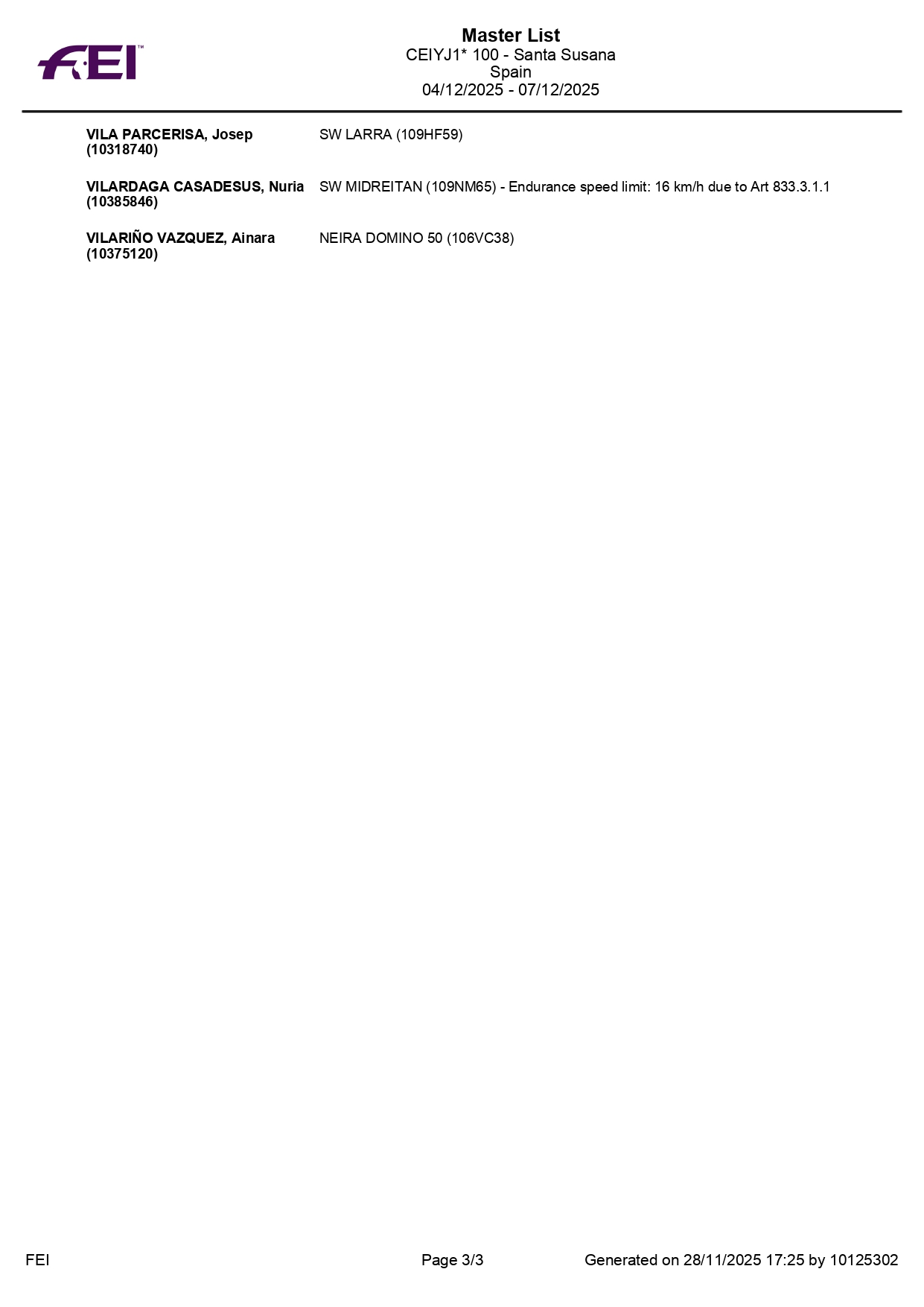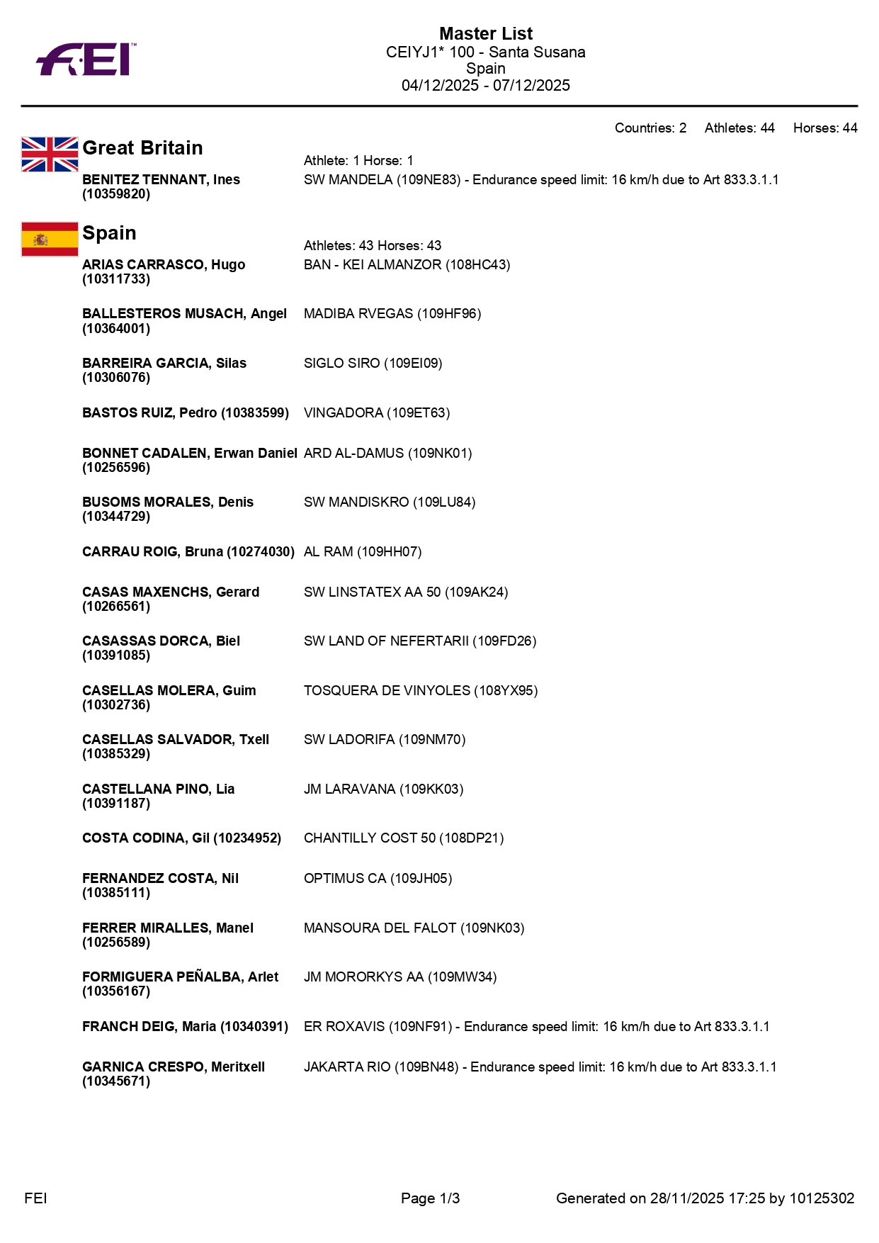 Estos son todos los Inscritos en el 72º Raid Hípico Internacional de Santa Susana (Barcelona). Campeonato de España Absoluto y Campeonato de España Junior 1*. Prueba organizada por el Ayuntamiento de Santa Susana. Que se correrá los días 5-7 de Diciembre de 2025.