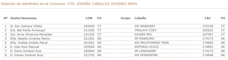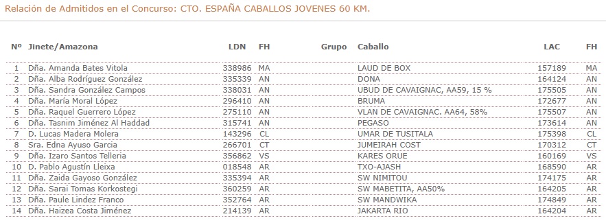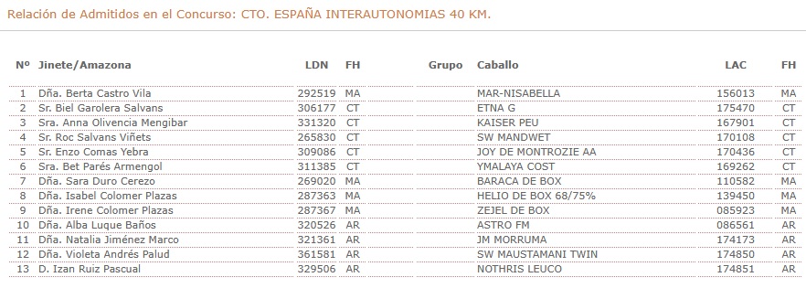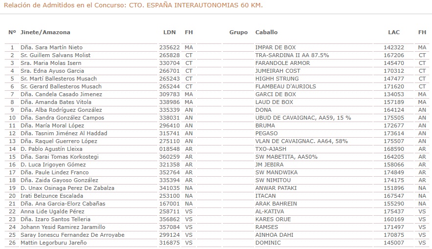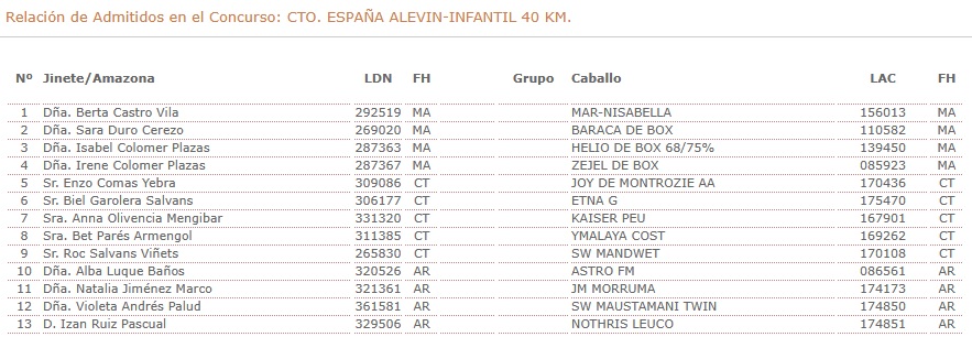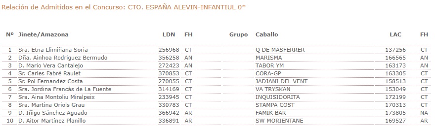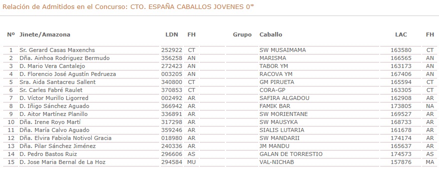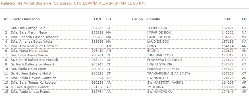 Estos son todos los Inscritos en el  Campeonato de España Interautonomias 2025, Caballos Jóvenes, Infantil-Alevin y Ciclo final de AECCA y Campeonato de Aragón, que se correrá el próximo día 28 de Diciembre de 2025 en Novallas, (Zaragoza), organizado por el Club  Cte Campo Alegre.