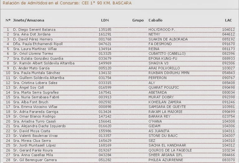 NoticiasRAID Inscritos en el CEI* del Raid Hípico de Bascara (Girona). 12 diciembre, 2013 Gabriel Gamiz 0 comentarios (Girona), en el CEI* del Raid Hípico de Bascara, Inscritos Inscritos en el CEI* del Raid Hípico de Bascara (Girona). CEI* de 90 Km. CETO* de 80 Km. Fuente: RFHE. y EnduranceTiming. Saludos de Gabriel.