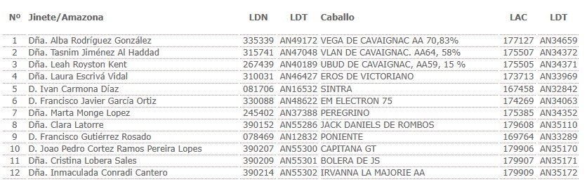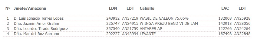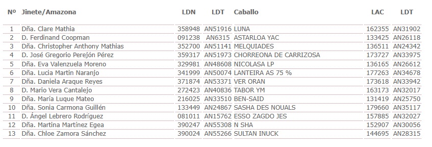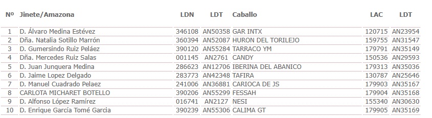 Estos son los Inscritos en el I Raid Hípico Pinares de Conil en el Colorado, (Cádiz), prueba organizada por la Asociación el Estribo de Conil. Que se correrá el día 18 de Abril de 2025.
