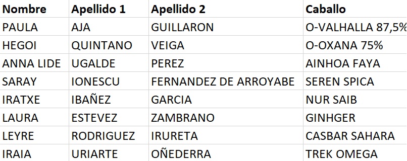 Estos son los Inscritos en el II Raid Hípico Ormaiztegui (Gipuzkoa). Prueba organizada por Orue Endurance. Mikel Etxenike y Oier Etxenike. Prueba que se correá mañana día 14 de Diciembre de 2025.