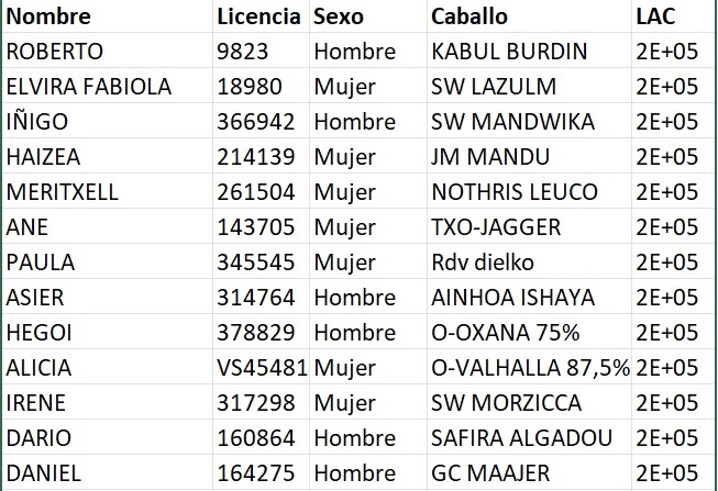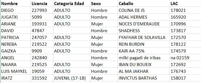 Estos son los Inscritos en el Raid Hípico del Ayuntamiento de Olaberria (Guipúzcoa). Ciclo de Caballos Jóvenes de AECCA, organizado por Orue Endurance. Que se correrá el día 22 de Febrero de 2026.