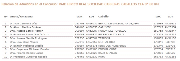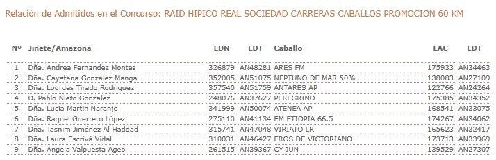 Estos son los Inscritos en el Raid Hípico Real Sociedad de Carreras de Caballos de Sanlúcar de Barrameda (Cádiz). En la Ermita Monte de la Algaida. Prueba organizada por la Real Sociedad de Caballos de Sanlúcar de Barrameda. Prueba final de las Ligas de Raid de la Federación Andaluza de Hípica de Jinetes y Caballos. Que se correrá el día 6 de Diciembre de 2025.