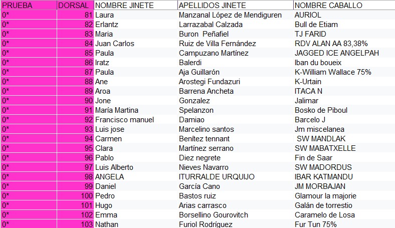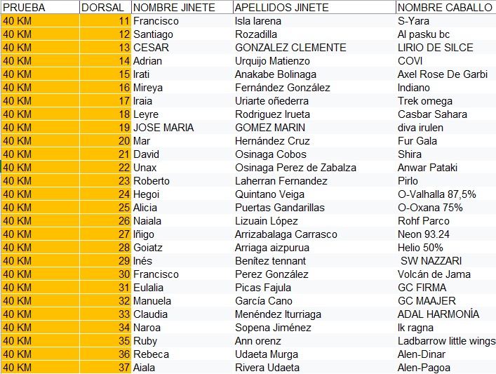 Estos son los Inscritos en el VIII Raid Hípico Playa de Laredo (Cantabria), y Ciclo de Caballos Jóvenes de AECCA.. Prueba organizada por el Ayuntamiento de Laredo. Y que se correrá el día 11 de Octubre de 2025.
