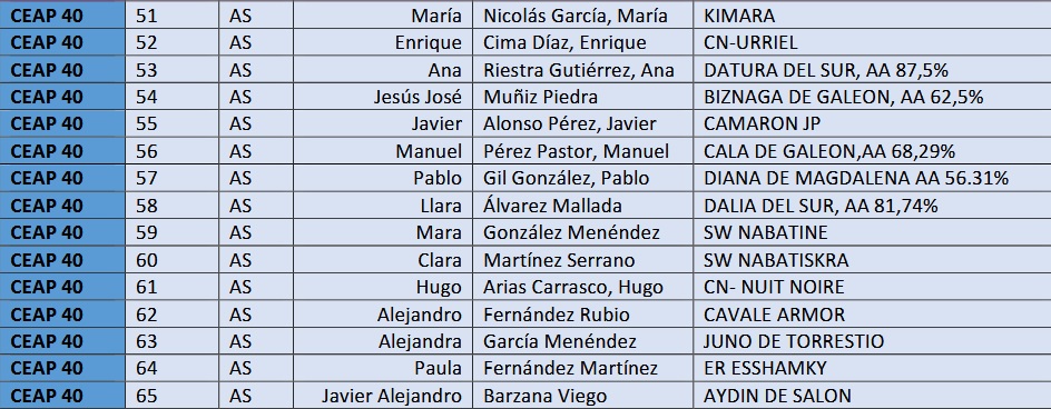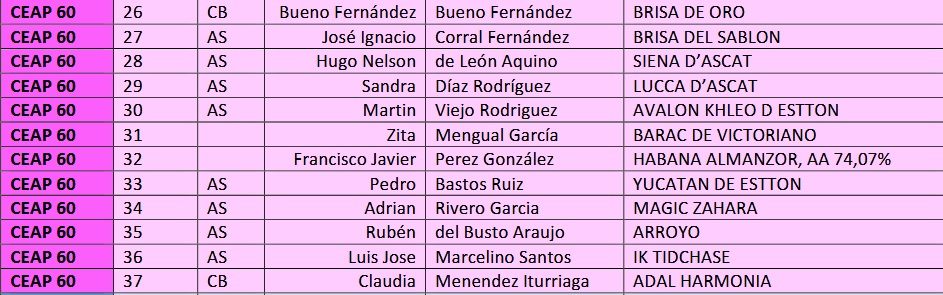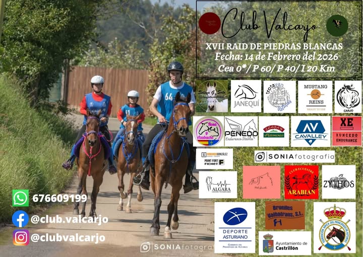 Estos son los Inscritos en el XVII Raid Hipico de Piedras Blancas en Castrillón (Asturias), prueba organizada por CB VALCARJO. Que se correrá el día 14 de Febrero de 2026.