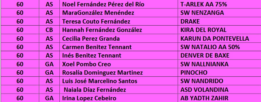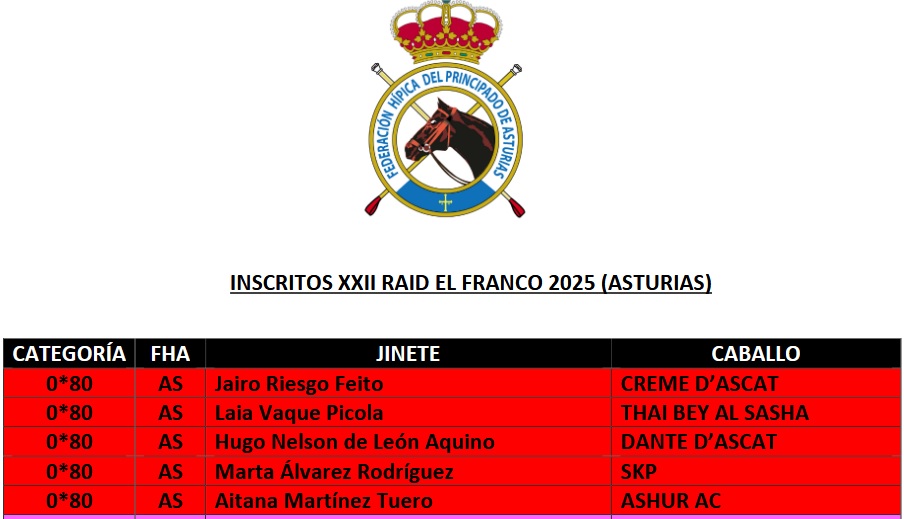 Estos son los Inscritos en el XXII Raid Hípico Del Franco en La Caridad, (Asturias). Prueba organizada por el Club Valcarjo. Que se correrá el día 18 de Octubre de 2025.
