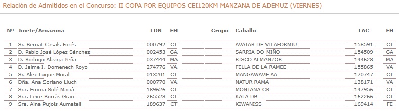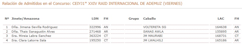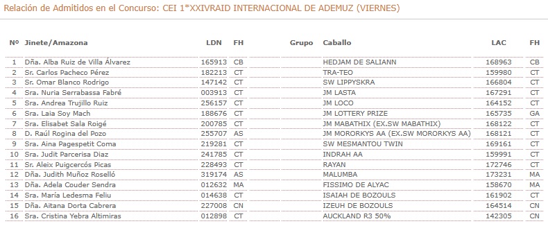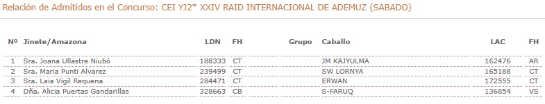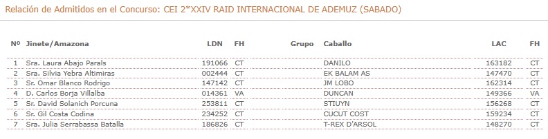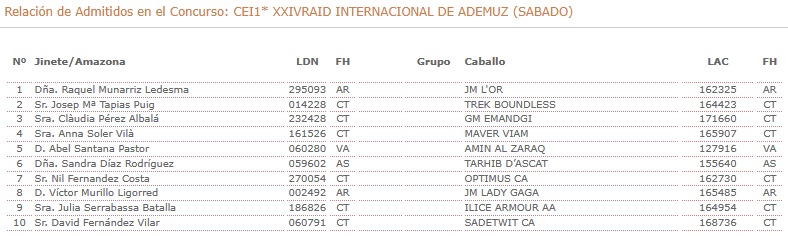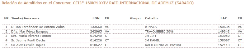 Inscritos en el XXIV Raid Hípico de Ademuz, (Valencia). Absoluto y Junior 2025 de la C.V.