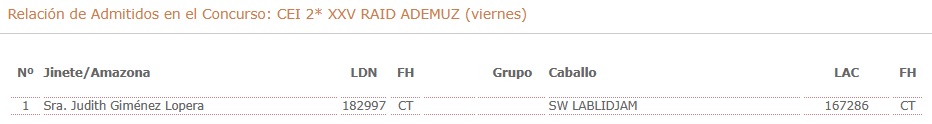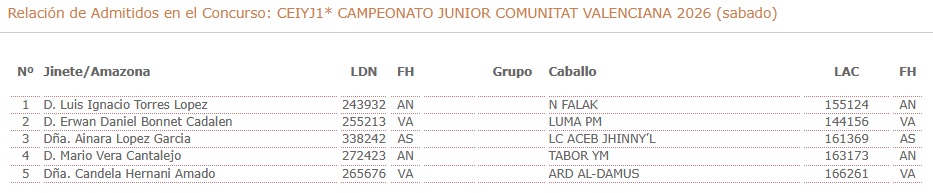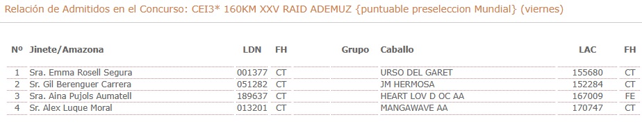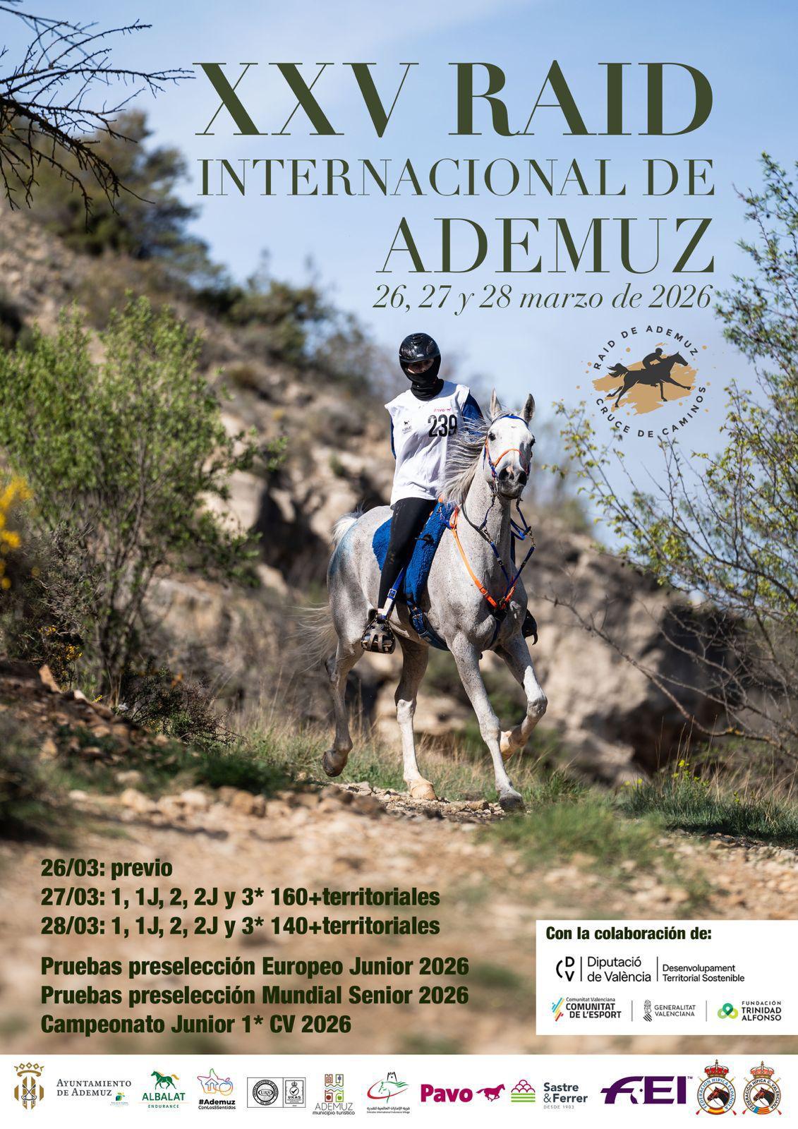 Estos son los Españoles Inscritos en el XXV Raid Hípico Internacional de Ademuz (Valencia), prueba organizada por Albalat Endurance. Que se correrá los días 27 y 28 de Marzo de 2026.