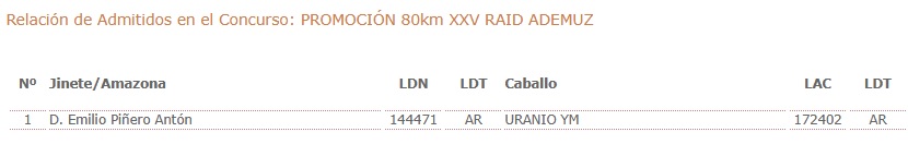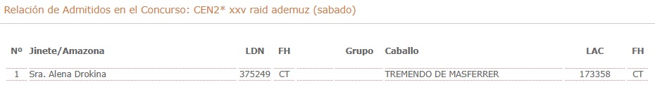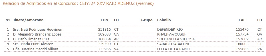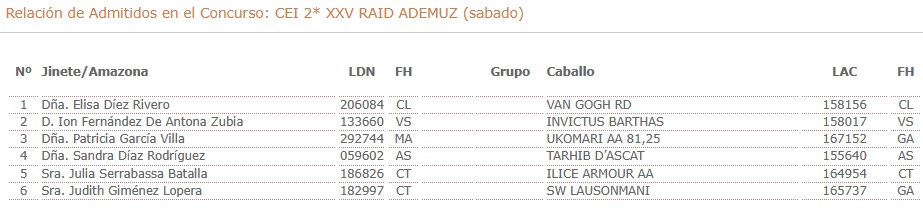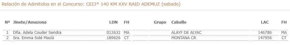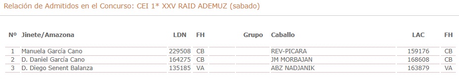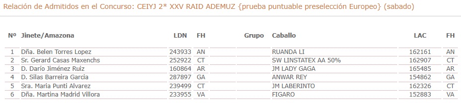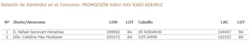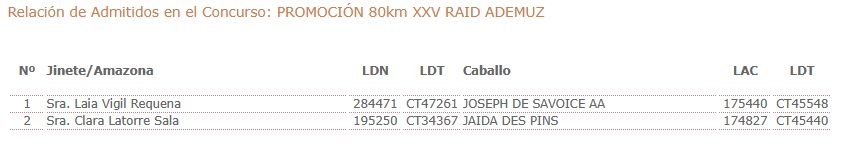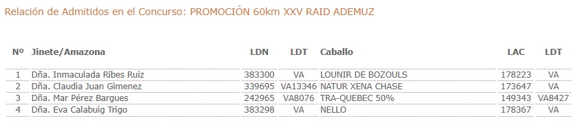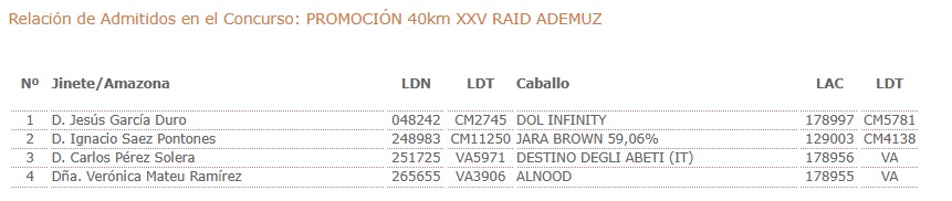 Inscritos en el XXV Raid Hípico Internacional de Ademuz (Valencia).