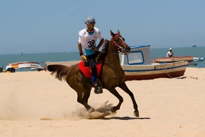 - Una fue, en el I Al-Andalus, en la salida de la etapa del Rocio (Huelva) a Sanlúcar de Barrameda (Cádiz), en la que yo participaba con el semental de Y.M. «Tapete» un Hispano-Árabe al 75%. A un amigo extremeño, Juan Carlos Sánchez con «Colo2mbo,» que se fue de caña y no lo podía controlar, así que lo arrope durante la salida hasta que el caballo se fue serenando y pudo seguir la prueba sin más problemas.