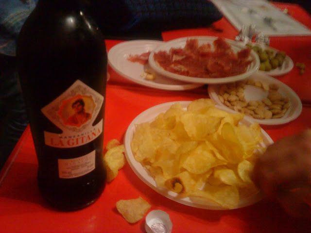 - Finalizada la reunión, con las dudas de los participantes, aclaradas por los responsables, se da como finalizada la Reunión Previa y ofreciendo el Comité Organizador una copa de vino, obsequio de la Bodega Sanluqueña de la Gitana, degustando su incomparable manzanilla, así como un apetitoso jamón, también regalo de los Sanluqueños, junto con otras viandas.