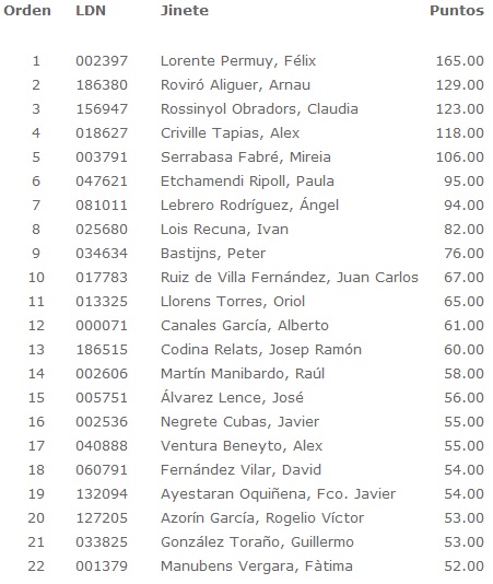 Ranking Liga Alta Competición Jinetes.