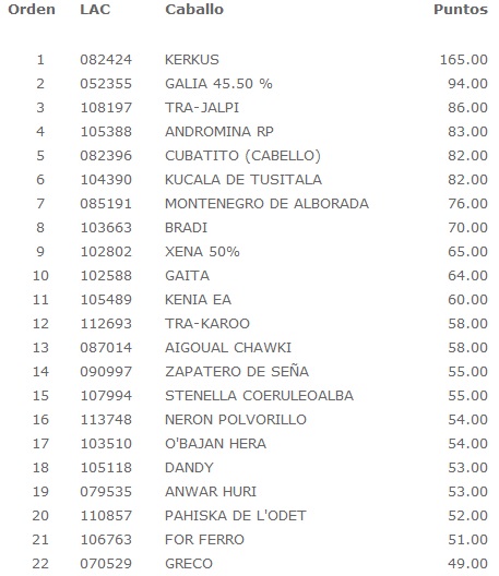 Ranking completo en:31/12/201 Liga Alta Competición Caballos.