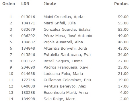 Ranking Liga Alta Competición y Copa 1 Estrella de Jinetes y Caballos.