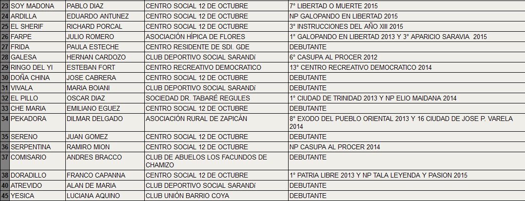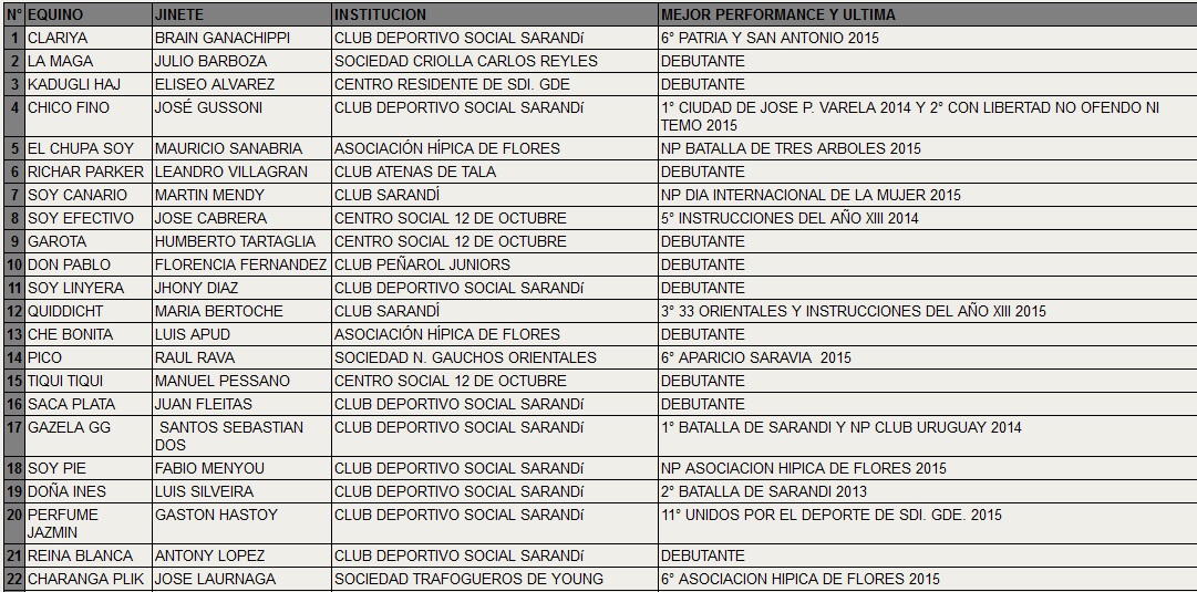 Resultados de la 23º Edición de «Esc. Carlos M. Eyheralde» prueba que se ha celebrado en el día de hoy 16 de Agosto de 2015 en Sarandí Grande en Uruguay.