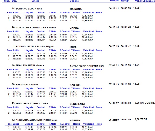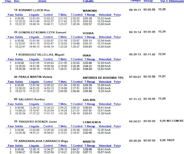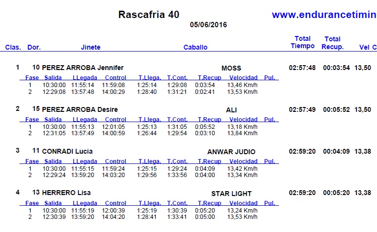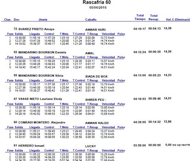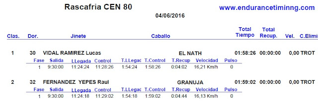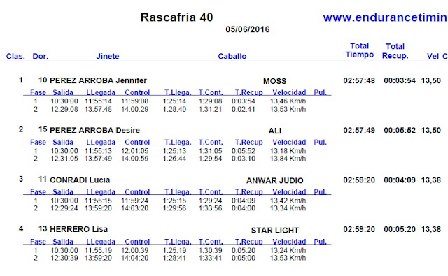 Resultados de las pruebas nacionales del Raid Hípico de Rascafrias -Santamaria del Paular (Madrid), que se corrieron el pasado domingo 5 de Junio de 2016.