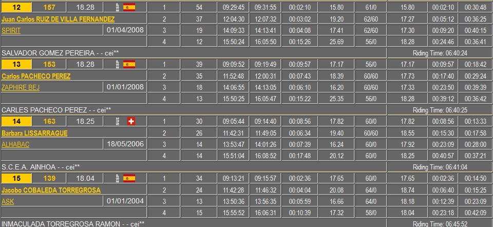 Resultados del Raid Hípico de Pontonx Sur L’Adour, prueba corrida los días 12 y 13 de Diciembre de 2015.
