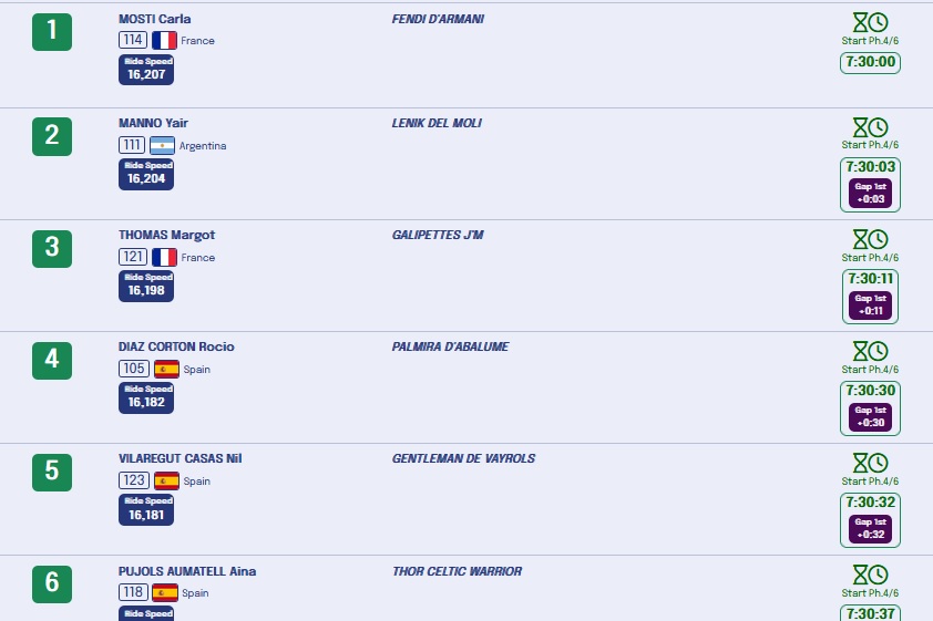 Estos son todos los Resultados del 72º Raid Hípico Internacional de Santa Susana (Barcelona). Prueba organizada por el Ayuntamiento de Santa Susana. Que se ha corrido en el día de hoy 6 de Diciembre de 2025, primer día de de las pruebas.
