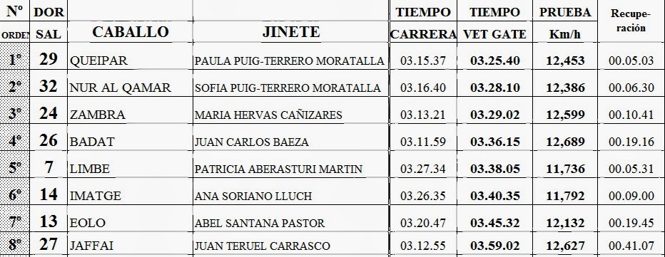 Resultados del II Raid Hípico «Partidas Rurales de Alicante» en  la Cañada del Fenollar (Alicante), organizado por la Asociación Cultural Deportiva Cañada y Foncalent,  corrido esta pasado sábado día 7 de Diciembre de 2013.