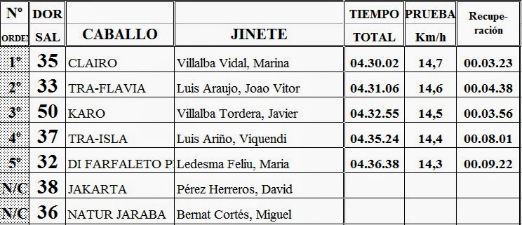 Resultados del IV Raid Hípico Lliria Montes de la Concordia en Valencia, prueba celebrada el pasado sábado día 17 de Mayo de 2014.