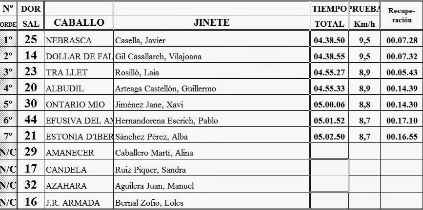 Resultados del IV Raid Hípico Lliria Montes de la Concordia en Valencia, prueba celebrada el pasado sábado día 17 de Mayo de 2014.